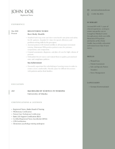 Create a nursing resume that will highlight your relevant certifications, skills, achievements, and more.