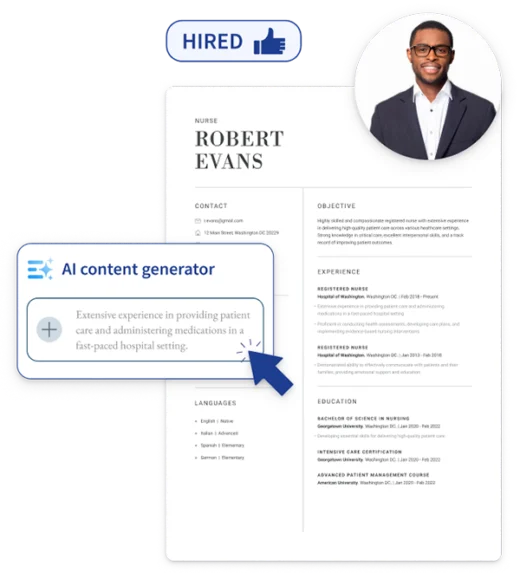 To make sure your summary catches a hiring manager’s attention right away at the top of your resume, our AI-powered writer gives you strong features, such as: